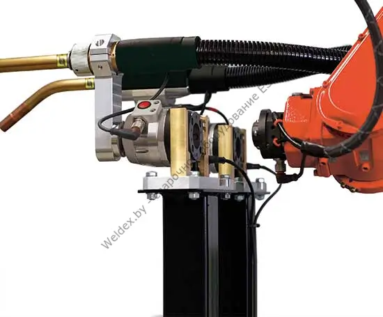 Aristo® FeedMech 4804w представляет собой отдельный и закрытый блок подачи, который включает в себя рабочие функции для продувки газа и проталкивания проволоки вперед и назад. Питание блока питания осуществляется от блока управления Aristo® FeedControl. Оба блока соединены кабелем длиной 2 м и комплектом шлангов. (Другая длина доступна по запросу).